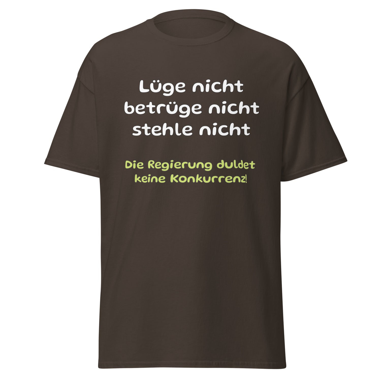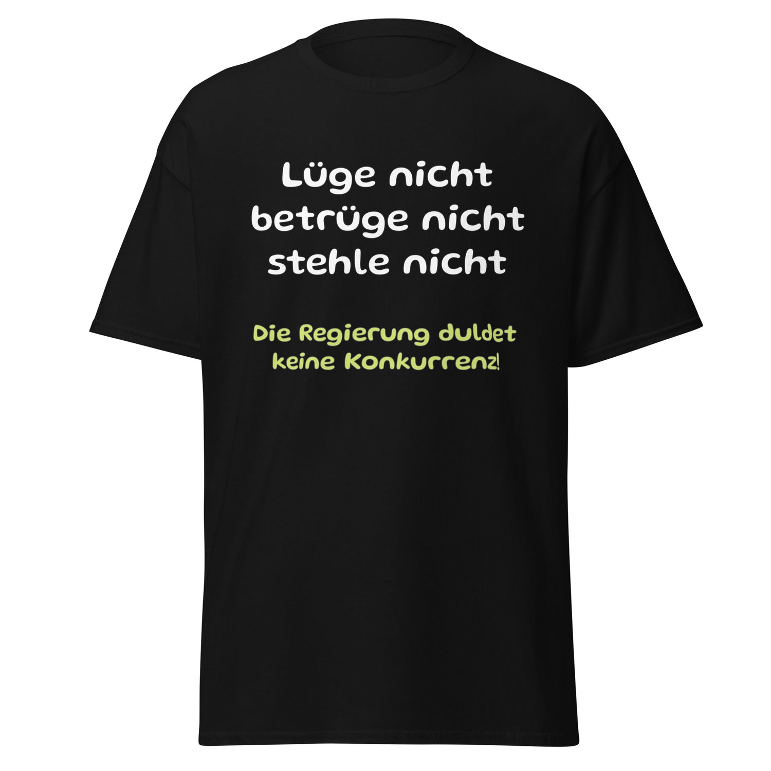 T-Shirt: Lüge nicht, betrüge nicht, stehle nicht - Die Regierung duldet keine Konkurrenz!